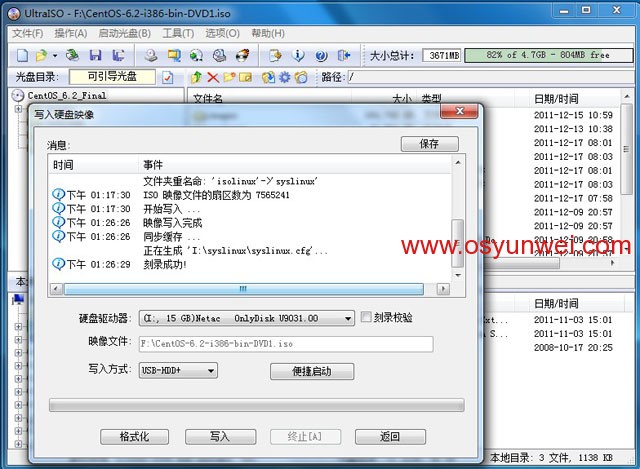 要求:U盘容量大于4G(因为CentOS 6.2 32位系统镜像文件需要3.55G的空间)