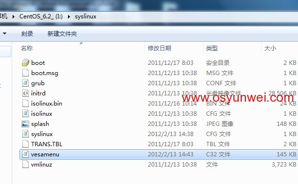 四、vesamenu.c32文件(用来替换CentOS 6.2默认文件)