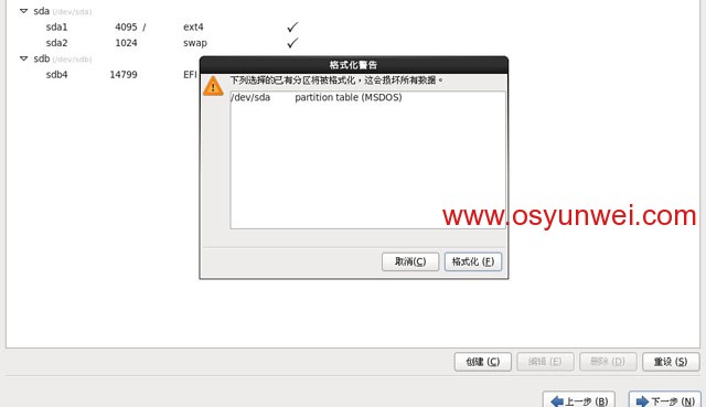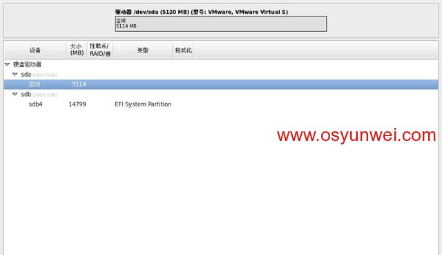 注意:这里可以看到磁盘信息,sda代表本机磁盘,sdb代表U盘,切忌选择sda进行分区,否则会把U盘格式化