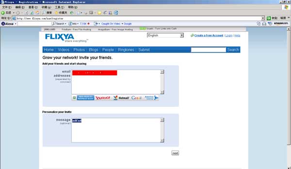 如上图,这个页面是用来推荐朋友加入这个活动,在email address这个表单里填写你要推荐加入的朋友的email.下面的 message 表单是写留言的.