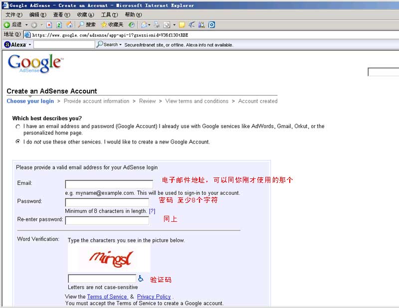 然后再去你信箱收信,信件里有一条含有类似 http://www.google.com/accounts/VE?service=adsense&c=xxxxxxxxxxxxxxxxx