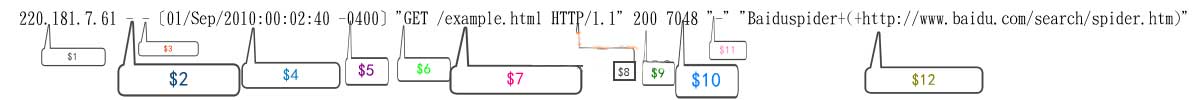 awk倾向于分析一行中的字段,我们需要来看一下网站的日志格式