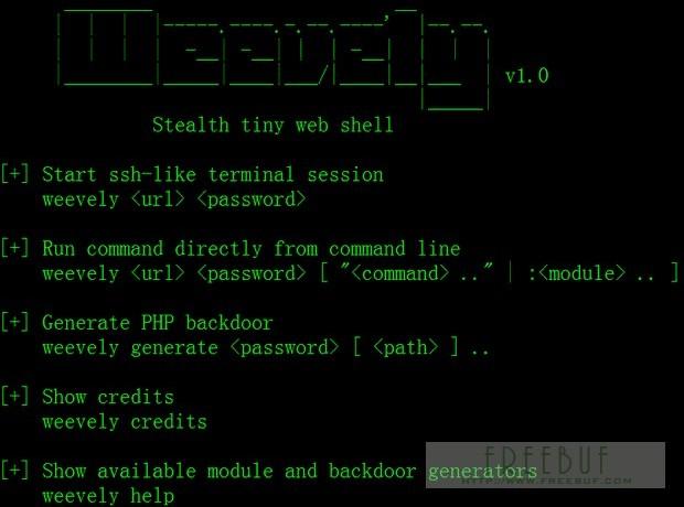 页面式的管理,weevely生成的服务器端php代码是经过了base64编码的,所以可以骗过主流的杀毒软件和IDS,上传服务器端代码后通常可以通过weevely直接运行。